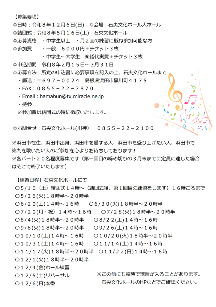 「第九 in 浜田2026」合唱団員募集